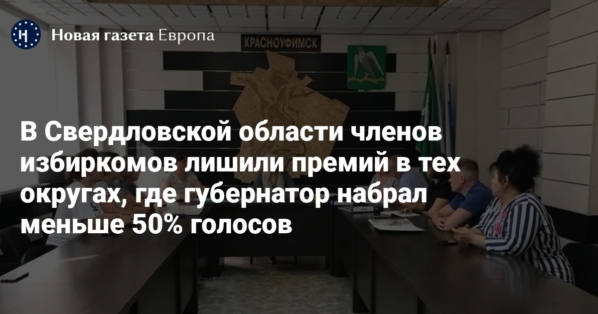 В Свердловской области членов избирательных комиссий в округах, где губернатор региона от «Единой России» Денис Паслер набрал меньше 50% голосов, лишили дополнительной оплаты труда по результатам работы на выборах. Об этом пишут «Вечерние ведомости».
