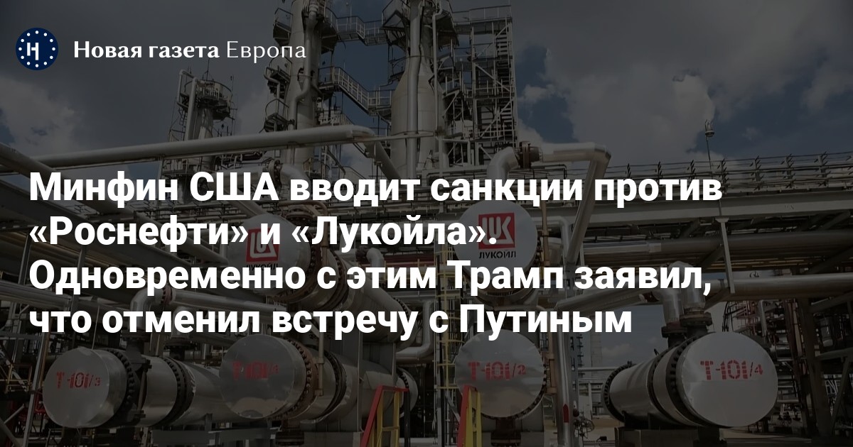 «Министерство финансов вводит санкции против крупных российских нефтяных компаний и призывает Москву немедленно согласиться на прекращение огня», — написал президент США Дональд Трамп.