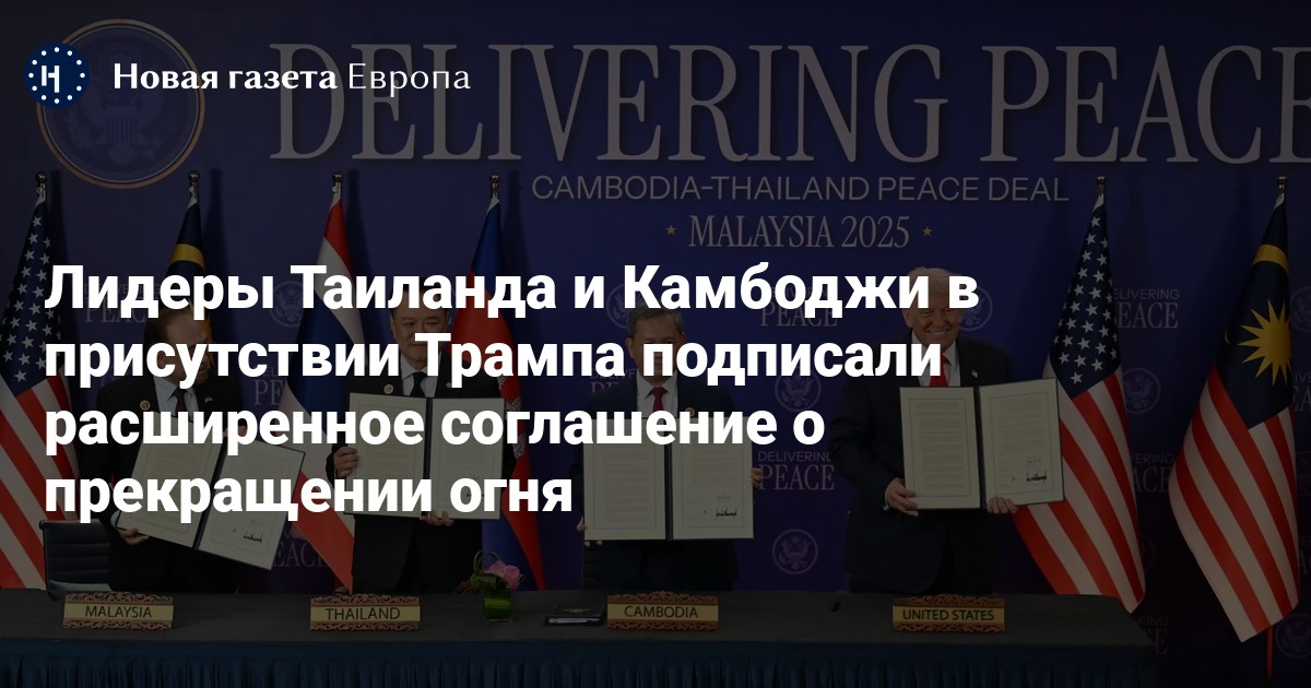 Таиланд и Камбоджа при посредничестве США и Малайзии подписали расширенное соглашение о прекращении огня. Об этом сообщает Reuters