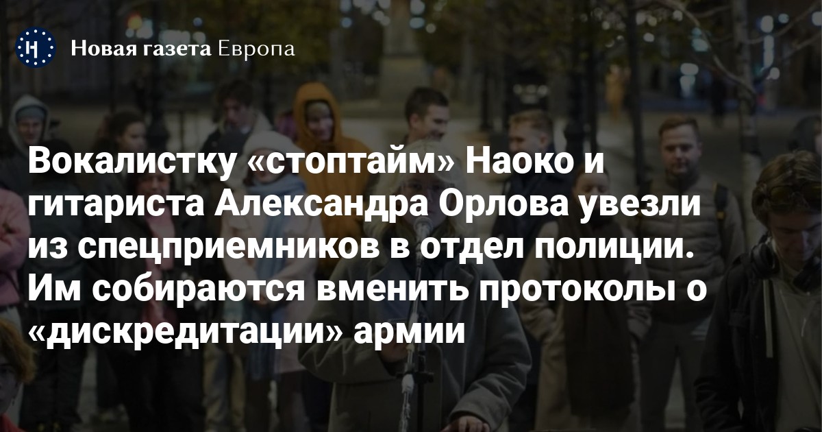 Позднее правозащитный проект «Слово защите» сообщил, что вокалистку «стоптайм» Наоко также перевели из спецприемника в Лугах в 76-й отдел полиции. По словам источника в окружении певицы, и Наоко, и Орлов пробудут в отделе полиции до утра, к этому времени сотрудники МВД должны переделать протокол о «дискредитации» армии и отвезти их в Куйбышевский суд. Судьба барабанщика коллектива Владислава Леонтьева, который также отбывает арест. неизвестна.