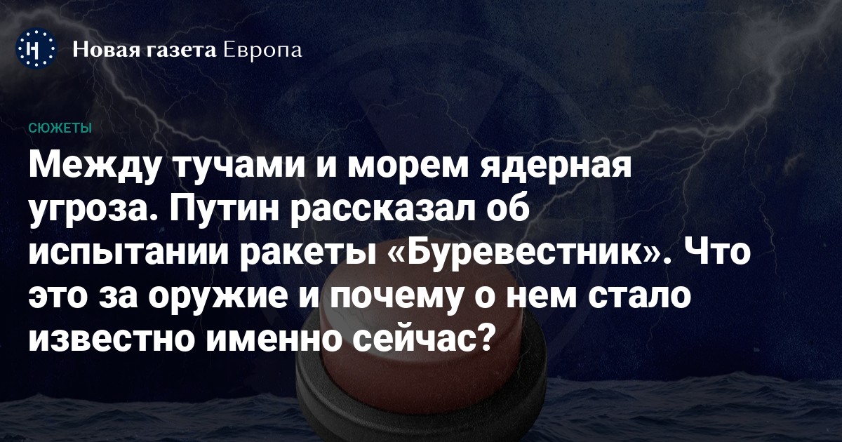 «“Буревестник” — новое и необычное оружие, вызывающее живой интерес в мире, — рассказывает “Новой-Европа” руководитель проекта “Ядерное вооружение России” Павел Подвиг. — Его создание было публично анонсировано Путиным еще в 2018 году. Российское руководство преподносит “Буревестник” как уникальный проект. И такой ракеты действительно ни у кого больше нет. Никто такого не делал, так как с боевой точки зрения это достаточно бесполезная идея. В качестве инженерной разработки “Буревестник”, если он действительно создан, представляет серьезный конструкторский интерес. Но не военный. Путин поставил задачу создать оружие, которое не сможет перехватить американская противоракетная оборона. По мысли российских разработчиков, система ПРО США, рассчитанная на работу в околокосмическом пространстве, будет бессильна. В реальности это медленная дозвуковая ракета. По словам Герасимова, она летела 14 тысяч километров около 15 часов. Получается, что скорость “Буревестника” ниже 1 тысячи километров в час. А крылатые ракеты с такой скоростью сегодня перехватываются. Мы это видим по происходящему в Украине и в Израиле».