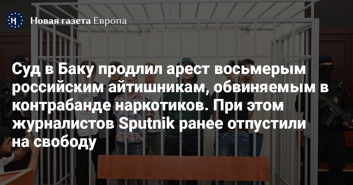 Сабильский районный суд Баку продлил арест на три месяца восьмерым россиянам, обвиняемым в контрабанде наркотиков. Об этом сообщает азербайджанское издание Caliber.