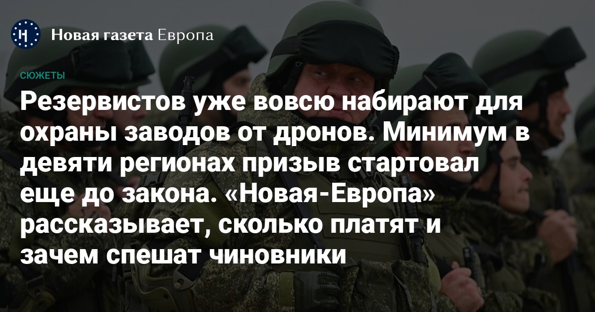 Еще до того, как закон о привлечении резервистов для охраны объектов от украинских дронов вступил в силу, в России уже начали по нему действовать. «Новая газета Европа» насчитала как минимум девять регионов, где власти объявили о создании таких отрядов. В Башкортостане и Нижегородской области первые группы резервистов отправились на сборы.