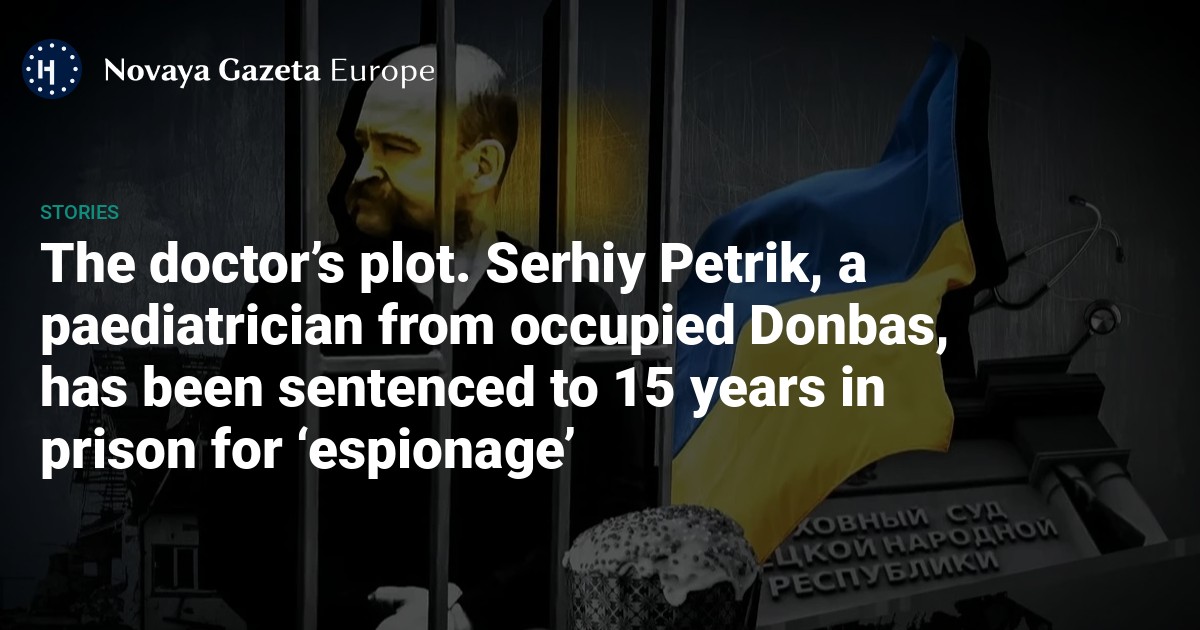 A propaganda video broadcast by Russian state news agency RIA Novosti of Petrik’s trial at the “Supreme Court of the Donetsk People’s Republic” shows footage of him behind bars in the courtroom as well as being sentenced. “My name is Serhiy Mykolayovych Petrik. I am a doctor … and I consider myself to be innocent. I am a Ukrainian citizen, and I am asking that I be acquitted. I have not admitted any guilt,” Petrik said in court.