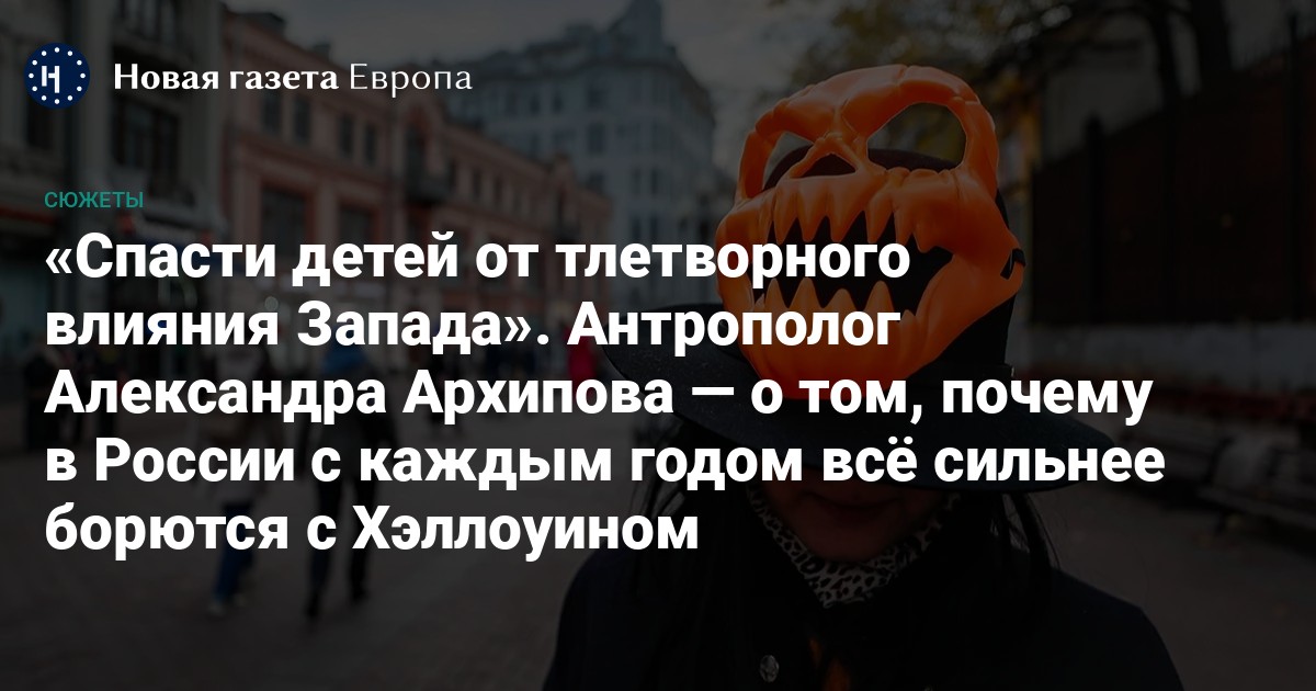 Борьба с Хэллоуином выглядит частью стратегии по культурной изоляции России: так, глобальные праздники заменяют выдуманными аналогами вроде «Тыквенного Спаса» или «Велесовой ночи». Подробнее об этом «Новая газета Европа» поговорила с антропологом Александрой Архиповой.