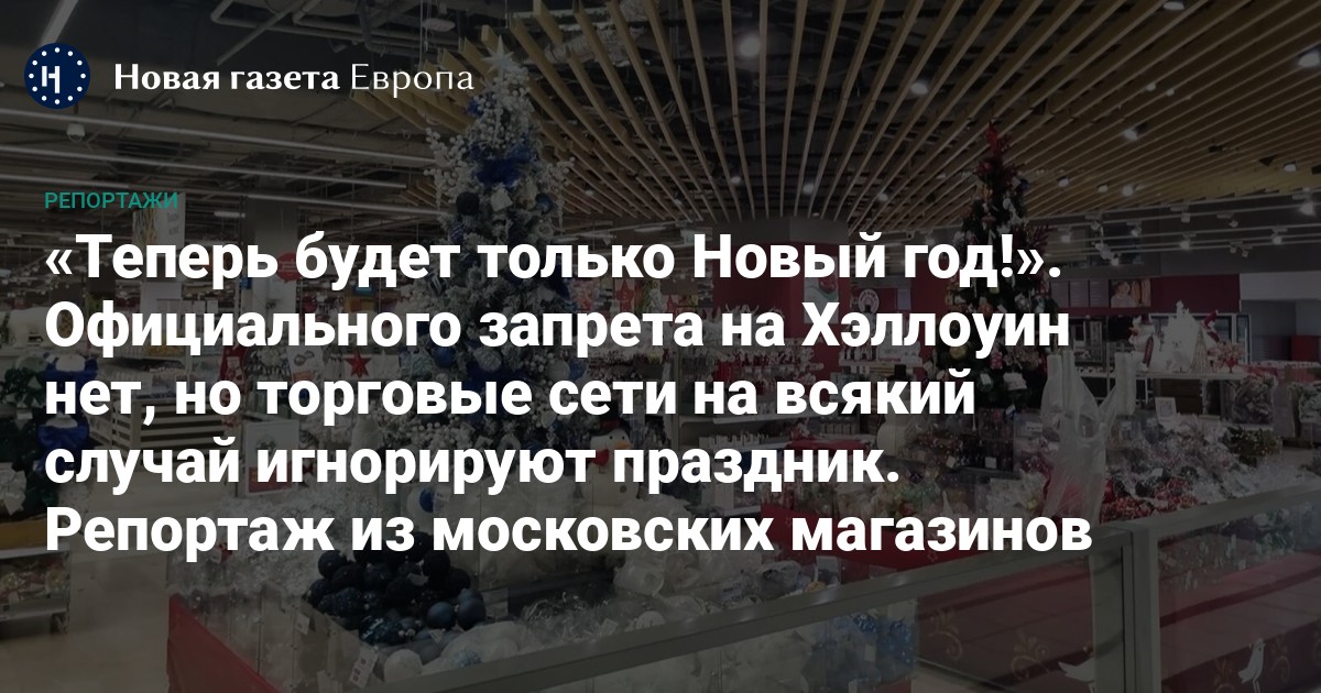 После признания «международного движения сатанизма» «экстремистской организацией» некоторые депутаты и общественные деятели призывают наказывать бизнесменов, которые продают украшения к Хэллоуину. В результате в этом году, впервые за много лет, многие торговые сети отказываются от традиционной атрибутики Дня всех святых и вместо этого раньше обычного размещают на полках новогодние товары. Корреспондент «Новой-Европа» прошелся по московским торговым центрам и убедился в этом.