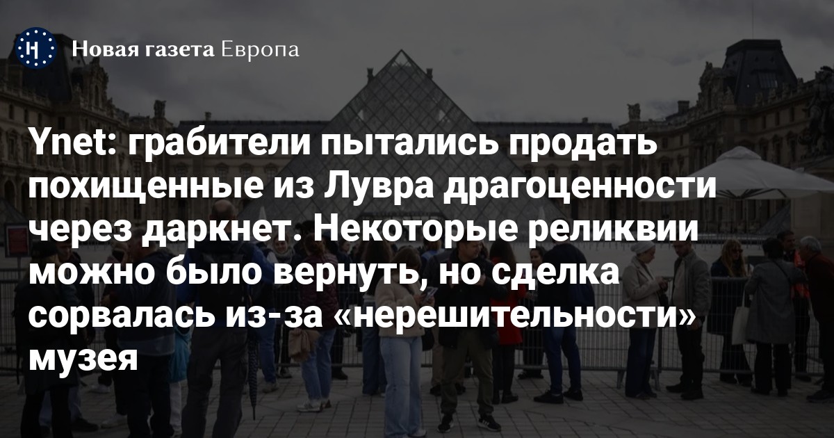 Грабители, которые похитили драгоценности из Лувра, предлагали продать музею некоторые украденные реликвии через даркнет, однако сделка сорвалась. Об этом пишет издание Ynet со ссылкой на директора израильской компании CGI Group, которая специализируется на бизнес-разведке и консультациях в сфере безопасности, Цвика Наве.