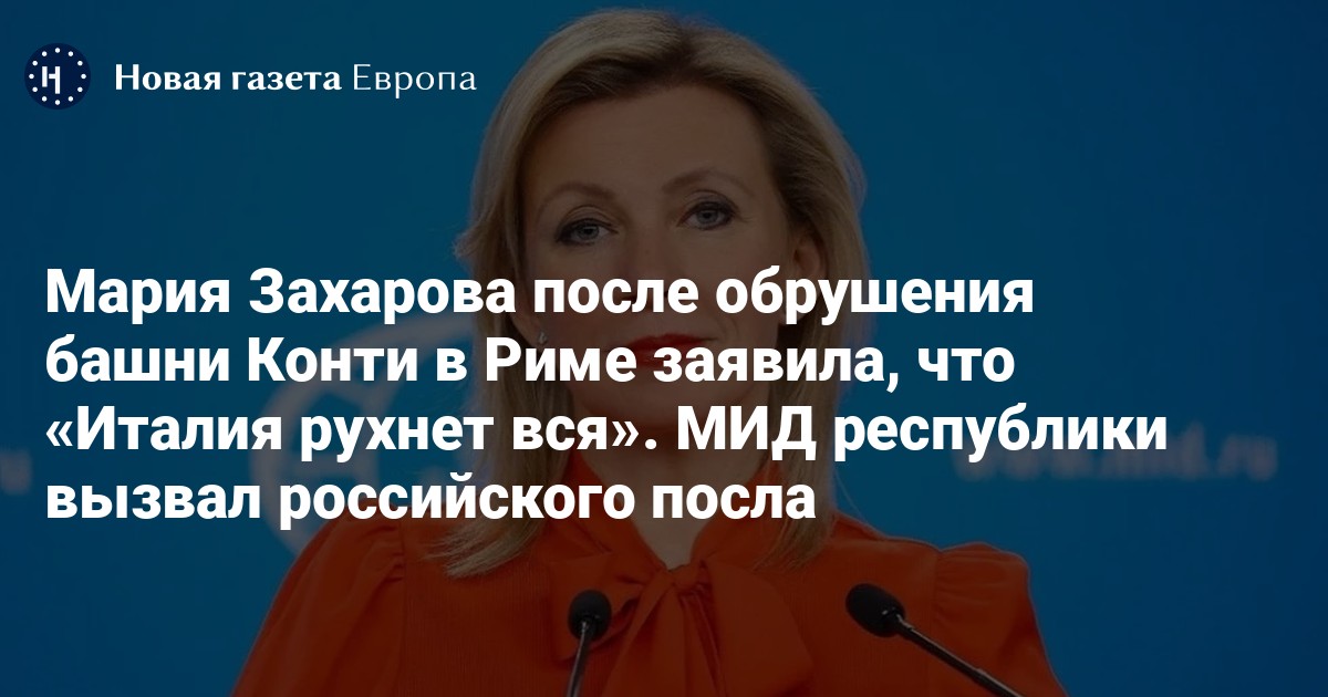 «Пока итальянское правительство будет бессмысленно тратить деньги своих налогоплательщиков, Италия рухнет вся: от экономики до башен», — заявила представитель МИД РФ.