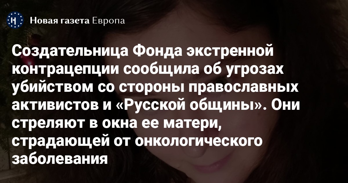 По словам общественницы, ей и ее маме, страдающей от онкологического заболевания, весь последний год угрожают убийством. Православные активисты и члены «Русской общины» оставляют в подъезде дома ее матери надписи и пентаграммы, а также простреливают окна.
