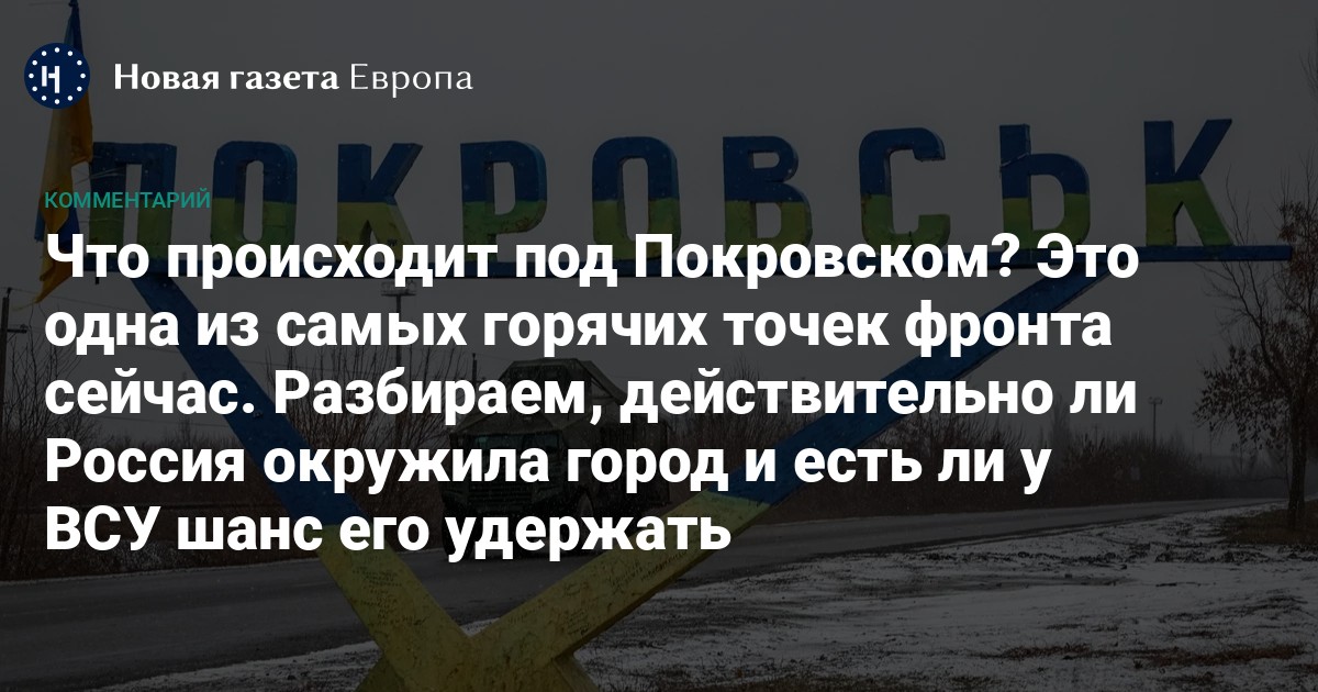 «Подразделения 51-й армии РФ с севера и 2-й армии РФ с юга постепенно закрывают кольцо окружения вокруг агломерации Покровск–Мирноград, — рассказал “Новой-Европа” военный эксперт Давид Гендельман. — Отсюда заявления Дейнеги и других, что нужно успеть вывести хотя бы личный состав, а снаряжение в целом уже потеряно. Путин несколько дней назад уже заявил про окружение. Это пока выдавание желаемого за действительное: реально есть лишь так называемое оперативное окружение, то есть взятие под огневой контроль всех коммуникаций, а физического полного окружения войсками пока нет. Но такими темпами вскоре желаемое превратится в действительное. В последние дни мы видели мелкие попытки деблокирования на северном фланге, возможно они повторятся также и на южном, но если командование ВСУ не сможет откуда-то перебросить значительные резервы, реально деблокировать там будет нечем».