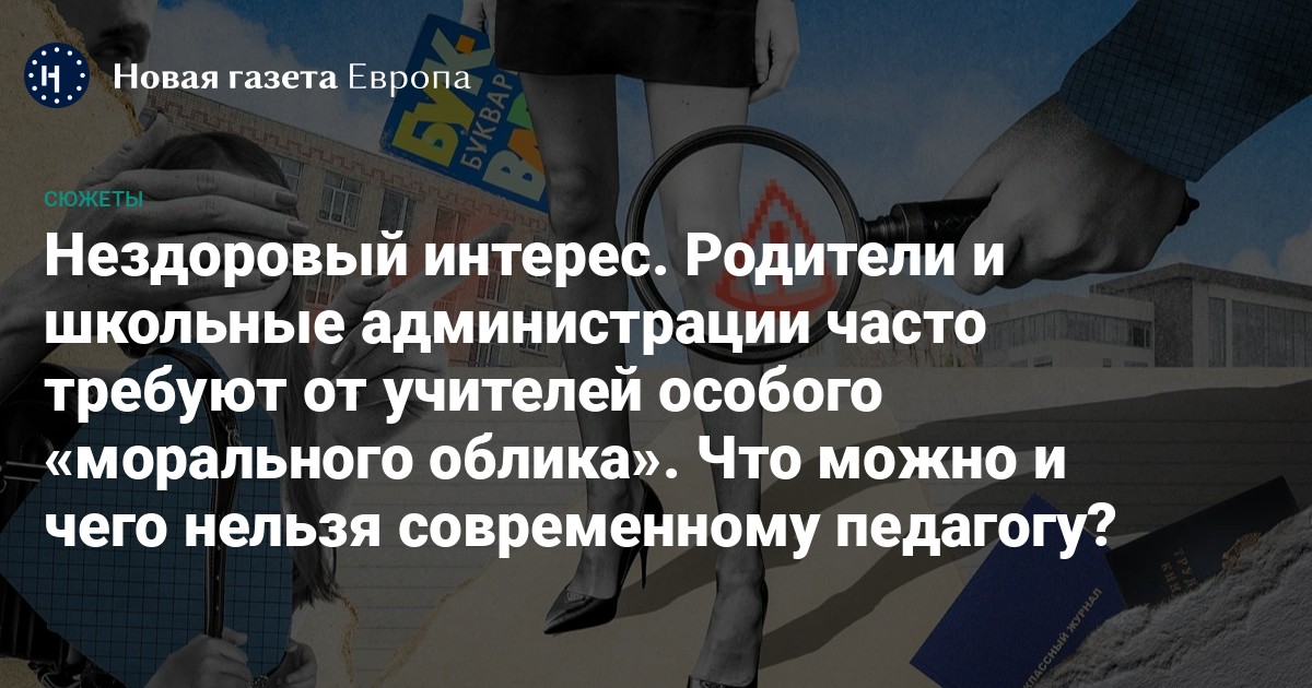 На эту тему в последние месяцы высказались многие политики и общественные деятели. «Лично я считаю, что педагог ничем не отличается от любого другого гражданина нашей страны, — сказал в интервью ТАСС депутат Госдумы от партии “Новые люди” Владислав Даванков. — И то, что могут другие граждане, должны мочь и учителя, никакого поражения в правах не должно быть. Это вот я лично так считаю, ничего страшного, если где-то мы увидели фотографию в купальнике. От этого не рухнут никакие устои, авторитеты и прочее».