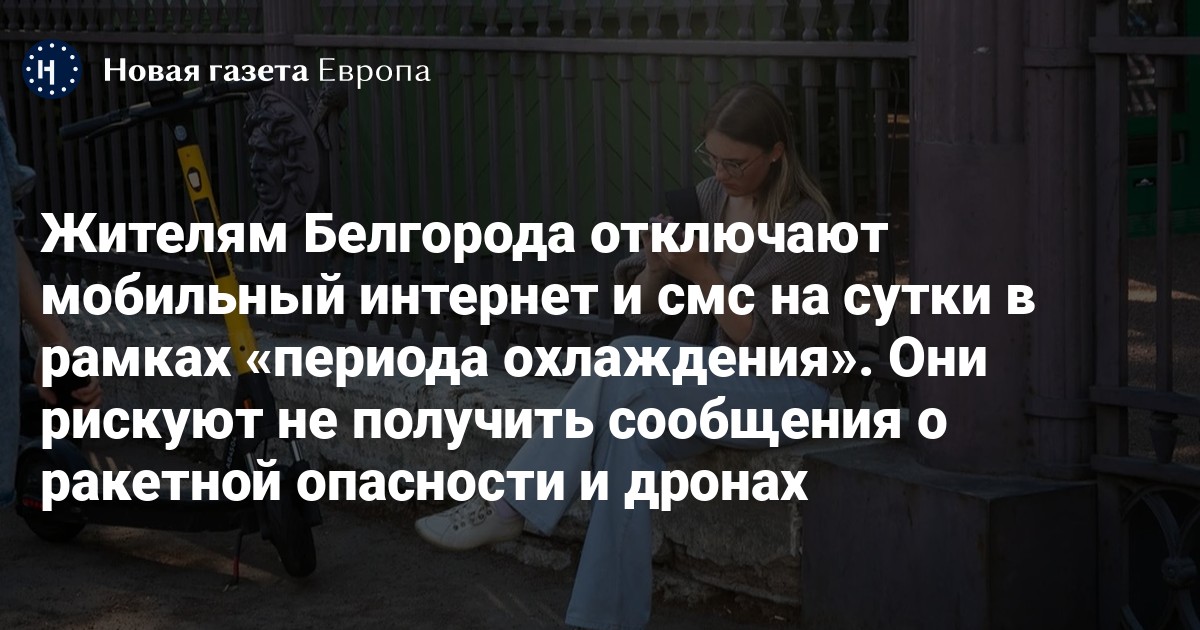 Жителям Белгорода стали отключать мобильный интернет и смс-сообщения на сутки в рамках «периода охлаждения». Об этом «Новой газете Европа» рассказал один из белгородцев.