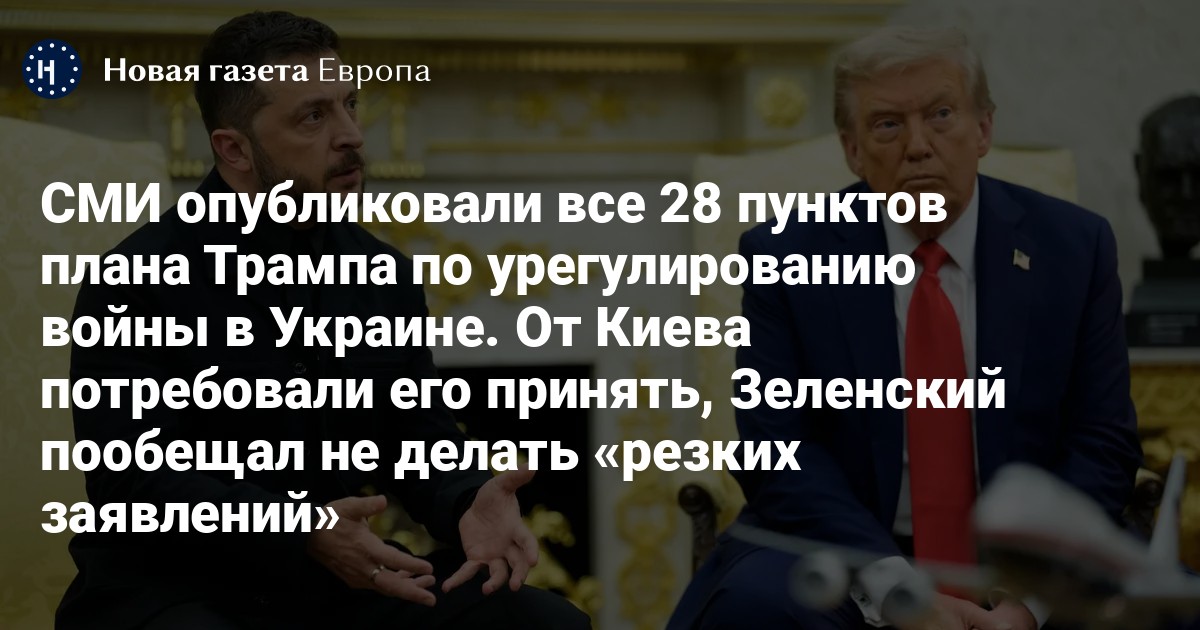 Депутат Верховной Рады Украины Алексей Гончаренко опубликовал план США и России по урегулированию войны в Украине, который ранее уже передали Киеву. Об аналогичном плане пишет американское издание Axios, а The Wall Street Journal указывает, что подлинность документа подтвердил Белый дом.