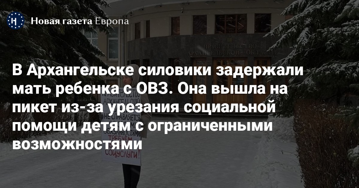 В Архангельске силовики задержали мать ребенка с ограниченными возможностями здоровья (ОВЗ), которая вышла на пикет к зданию областного правительства. Об этом «Новой-Европа» сообщили друзья задержанной.