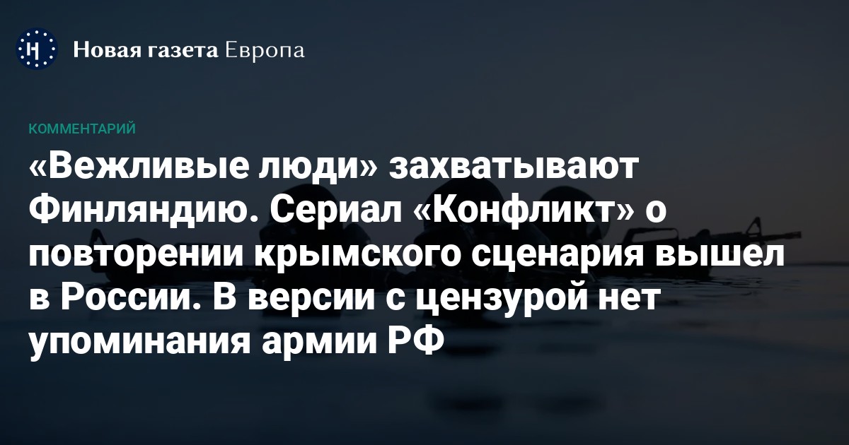 На стриминговой платформе Wink с конца ноября можно посмотреть финский сериал «Конфликт» — о попытке захвата полуострова Ханко людьми в военной форме без опознавательных знаков, говорящими между собой на русском языке. Кинокритик Ирина Карпова посмотрела первый сезон сериала и считает, что актуальность темы перевешивает основные недостатки этой патриотической финской экшн-драмы.