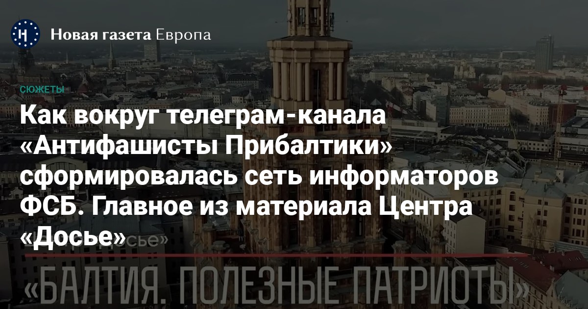 Центр «Досье» вместе с журналистами латвийской расследовательской телепрограммы «Ничего личного» (Nekā personīga) установили, как вокруг телеграм-канала «Антифашисты Прибалтики» сложилась агентурная сеть, работающая в интересах ФСБ. Сеть собирает сведения в странах Балтии: кто из жителей поддерживает Украину, где проходят мероприятия оппозиции, где замечают военную технику и объекты НАТО.