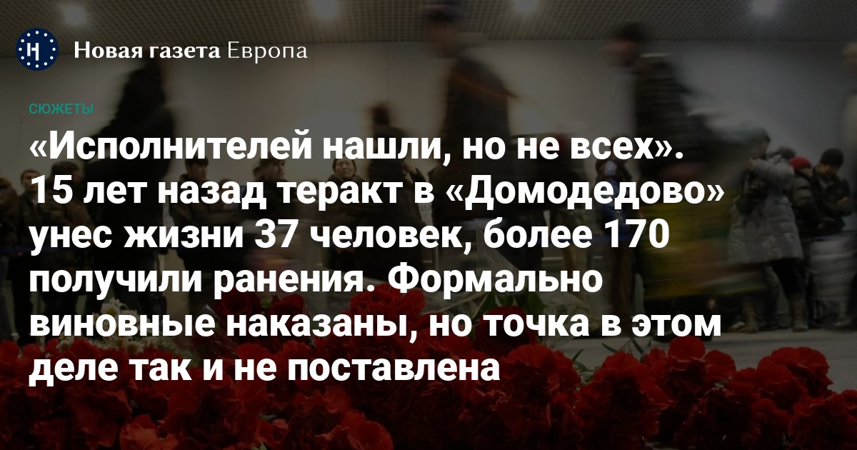 15 лет назад теракт в «Домодедово» унес жизни 37 человек, более 170 получили ранения. Формально виновные наказаны, но точка в этом деле так и не поставлена