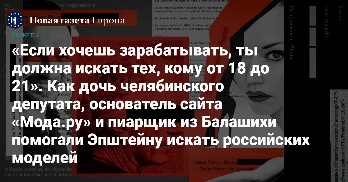 Как дочь челябинского депутата, основатель сайта «Мода.ру» и пиарщик из Балашихи помогали Эпштейну искать российских моделей
