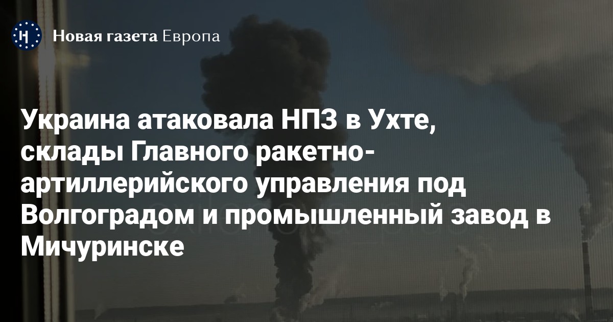 Украина атаковала НПЗ в Ухте, склады Главного ракетно-артиллерийского управления под Волгоградом и промышленный завод в Мичуринске