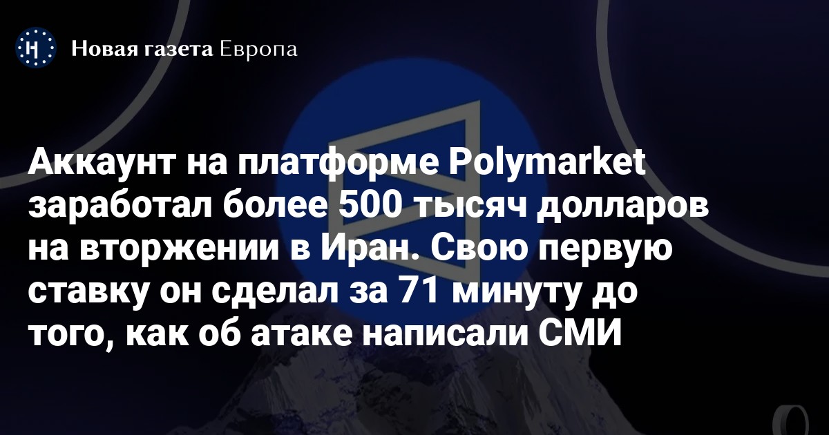 Аккаунт на платформе Polymarket заработал более 500 тысяч долларов на вторжении в Иран