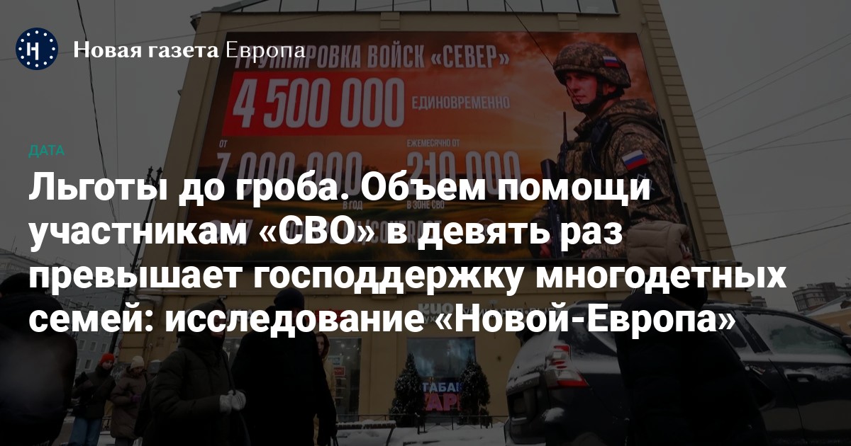Объем помощи участникам «СВО» в девять раз превышает господдержку многодетных семей: исследование «Новой-Европа»