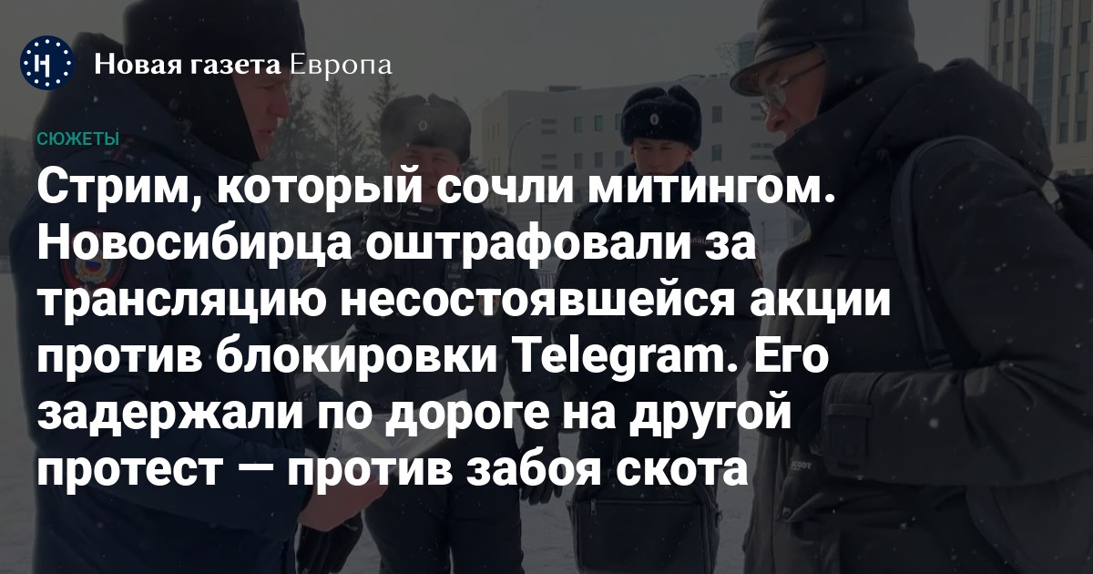 Новосибирца оштрафовали за трансляцию несостоявшейся акции против блокировки Telegram. Его задержали по дороге на другой протест — против забоя скота
