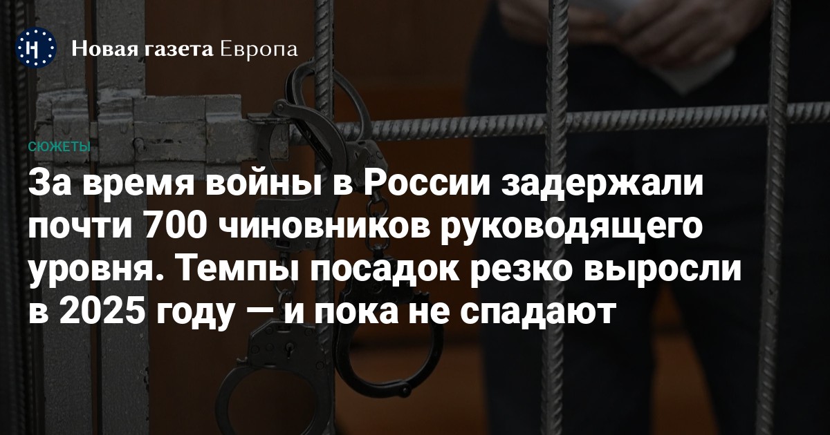 В 2025 году число уголовных дел против чиновников высокого ранга выросло почти на 30% по сравнению с 2024-м. Судя по данным за первые три месяца 2026-го, текущий год окажется не менее, а может, и более насыщенным, чем предыдущий. Уголовные дела уже возбуждены против как минимум 72-х руководителей федерального и регионального уровня, рассчитала «Новая-Европа». В среднем в стране каждые три дня задерживают управленца не ниже регионального замминистра.