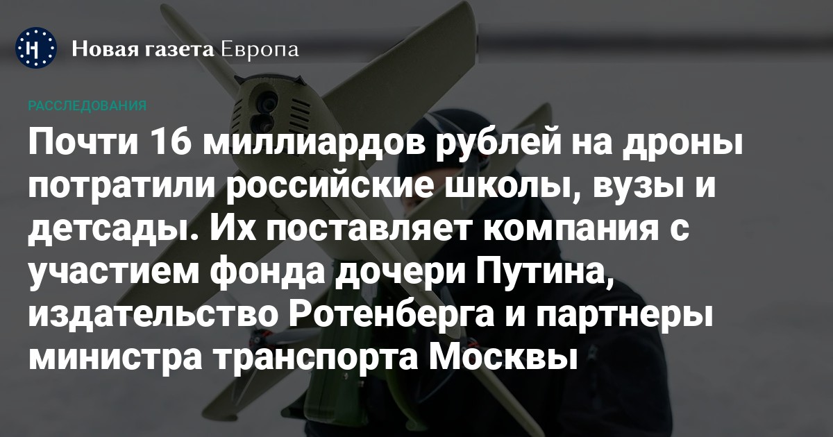 По подсчетам «Новой-Европа», за последние четыре года российские учреждения начального, среднего и высшего образования закупили беспилотники, а также наборы для обучения сборке и управлению БПЛА и программы для управления дронами на общую сумму почти в 16 миллиардов рублей. До войны на эти цели образовательные учреждения по всей России тратили около 350 млн рублей в год. «Новая-Европа» рассказывает, чему учат детей на уроках дроноведения и кто зарабатывает на милитаризации молодежи.